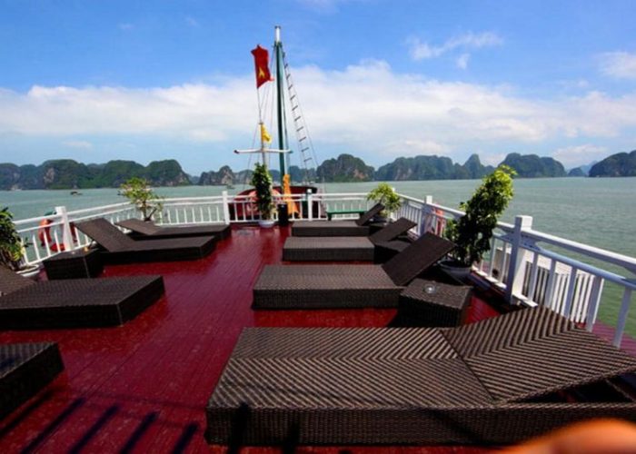 Halong Phoenix Cruiser 03 was launched in November 2011 with 14 cabins. The vessel is designed with sophisticate and meticulous attention to details. These aim to enhance your enjoyment while spending your time on our cruiser. The 40 meter wooden junk cabins is facilitated with full service of restaurant, sun deck with comfortable lounge chairs and an attentive staff to cater to your every need. Along with the great facilities we have special activities: exploring the caves and beaches, kayaking, cooking class, etc. Therefore, the cruiser is the perfect choice for a family, couples or small groups.
