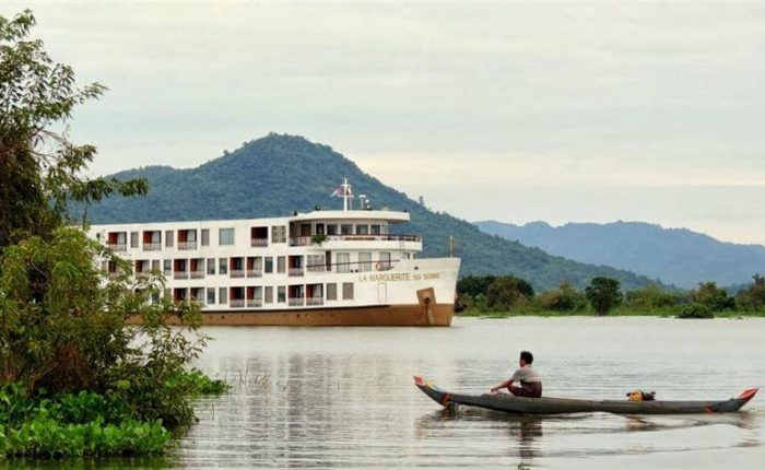 The Marguerite is a boat that will allow you to discover the different countries that border the Mekong. On board this unit which refers to Marguerite Duras, dive into the heart of a refined decor and go back to the time of the colonial past.The cabins, spacious and comfortable, are spread over four decks and are all exterior. On the Main deck, the 8 Deluxe cabins with a surface area of 20 m² have two portholes (not openable).