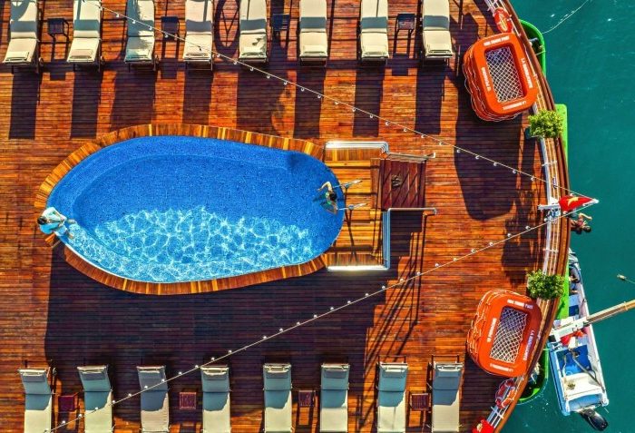 The Sundeck consists of 6 Junior Suites with a surface area of 26 m² with window and large bay window opening onto a balcony, and 2 Deluxe Suites of 41 m² with window and private terrace balcony.